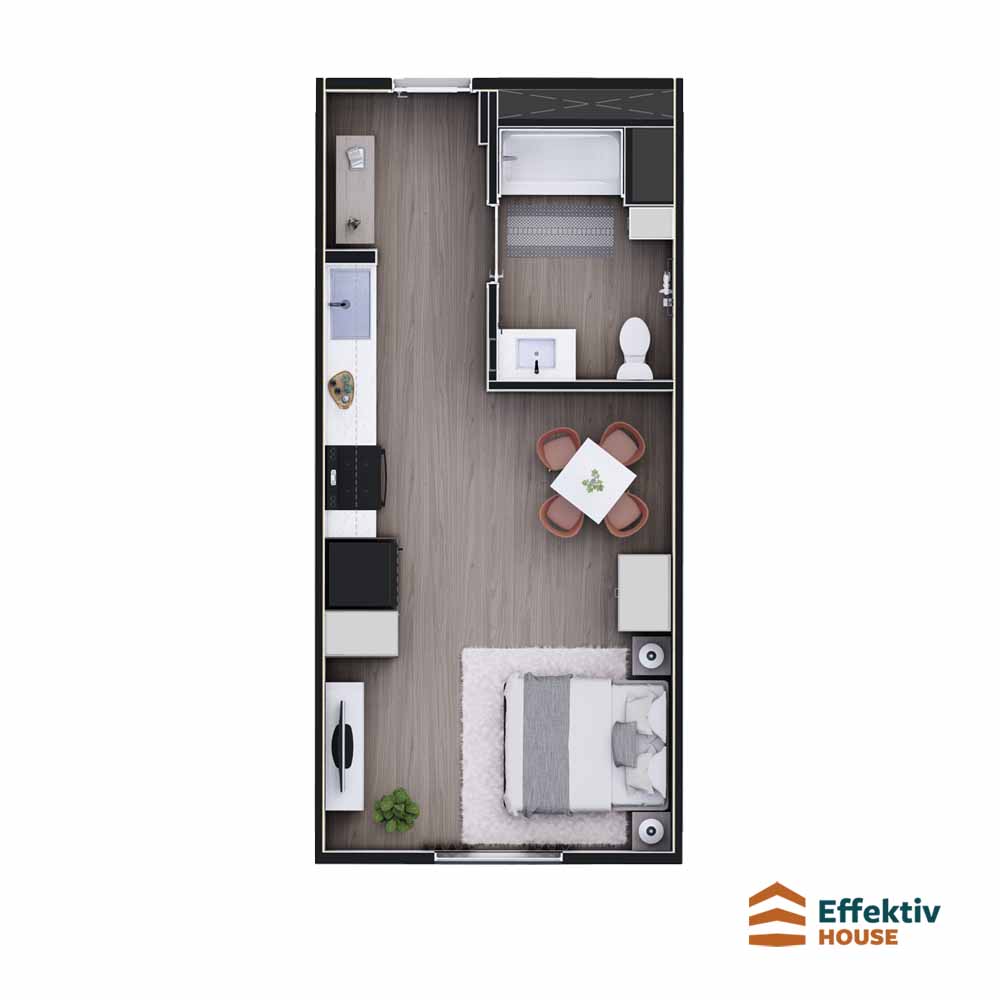 14’0″ width, 28’0″ length, 315 sq ft, studio bed, 1 bath, 1 story, 1 section